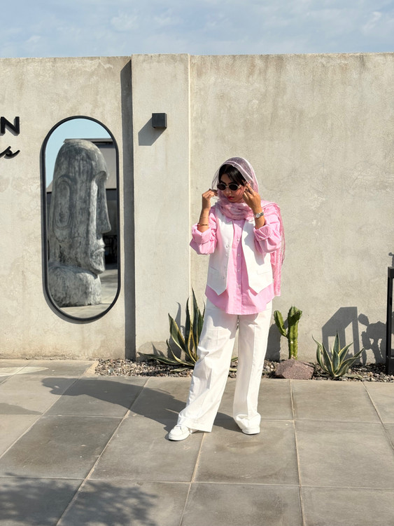 شلوار کمرش کشی هست و بندینک داره و همچنین جیب قابل استفاده ،مدل شلوار بگ،جلیقه هم فری سایز و جیب جلو کار نما هست